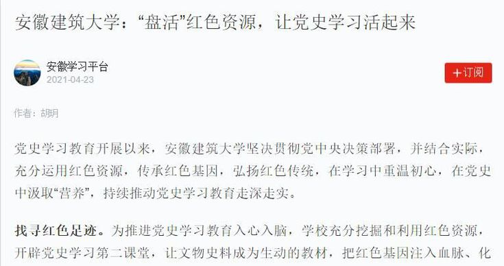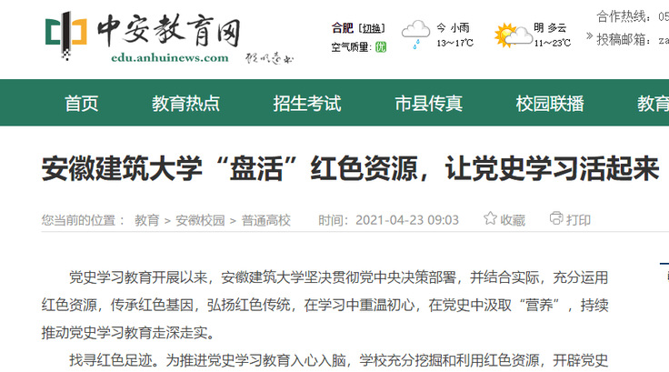 编者按:党史学习教育开展以来,学校坚决贯彻党中央、省委决策部署,持续推动党史学习教育走深走实。4月23日,中安在线对此进行了报道,学习强国平台进行了转载推介。