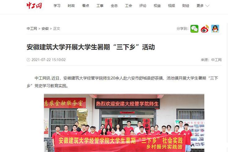 编者按:近日,必赢经管学院师生20余人赴六安市舒城县舒茶镇、汤池镇开展大学生暑期“三下乡”党史学习教育。7月22日,中工网对此进行了报道。