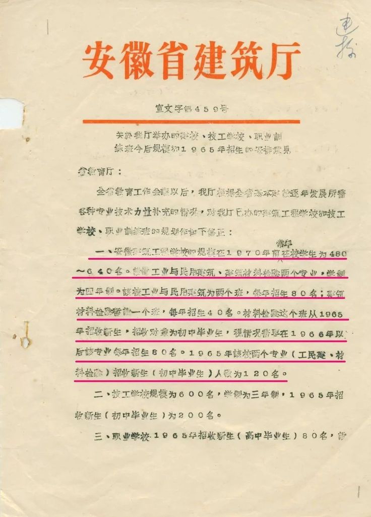 到了1960年3月,安徽建筑工程学校教职工发展到99人,学生587人,开设了工业与民用建筑、硅酸盐两个专业。就在这时,省委指示安徽建筑工程学校从当年下学期开始,在中专的基础上,扩建成为安徽省第一批培养高等建筑人才的建筑工业学院。