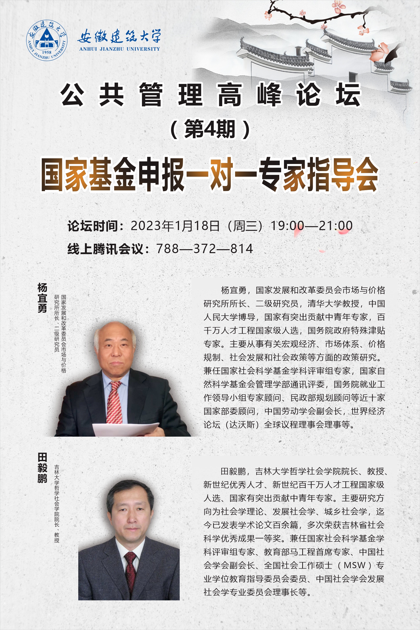 2023年第4场学术报告:国家基金申报一对一专家指导会