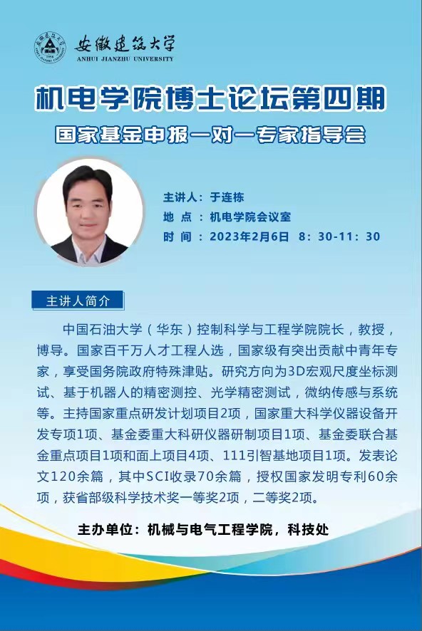 2023年第6场学术报告:机电学院博士论坛(第4期)——国家基金申报一对一专家指导会