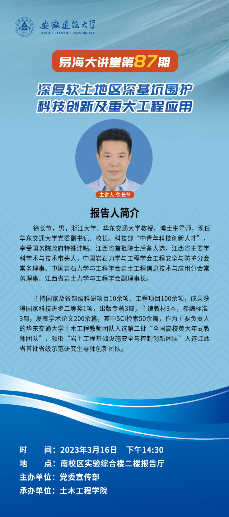 主 题:深厚软土地区深基坑围护科技创新及重大工程应用