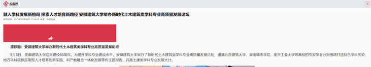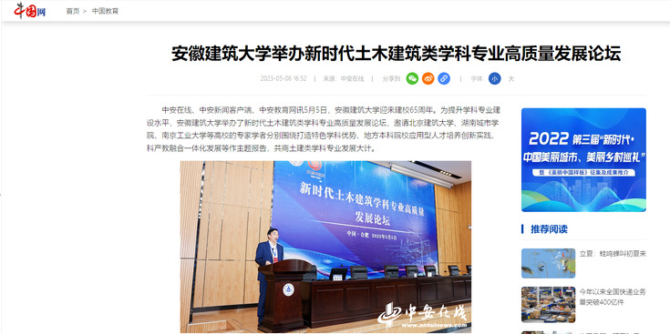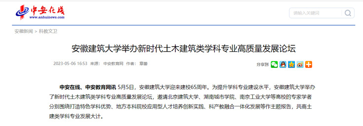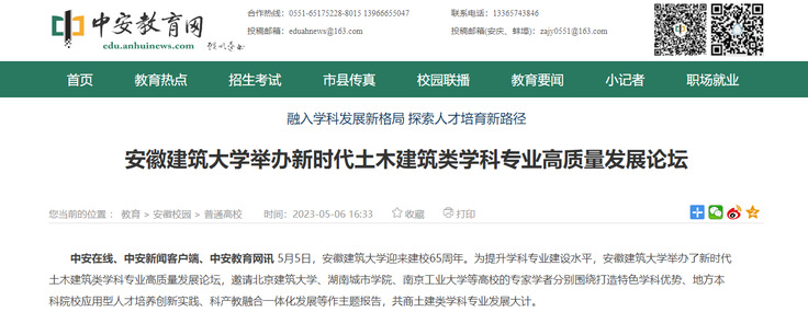 编者按:在建校65周年之际,学校举办新时代土木建筑类学科专业高质量发展论坛,邀请来自北京建筑大学、湖南城市学院、南京工业大学等高校的专家学者齐聚一堂,共商土建类学科专业发展大计。中安在线、中安教育网、中国网、云南网等多家媒体对此进行报道。