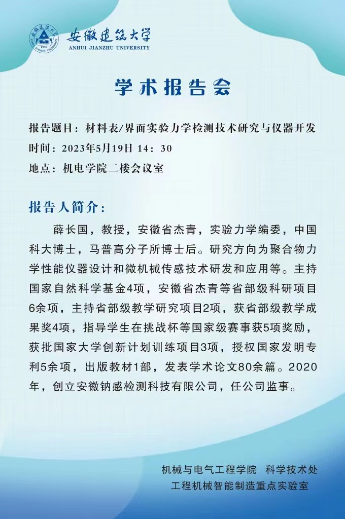 2023年第22场学术报告:材料表/界面实验力学检测技术研究与仪器开发
