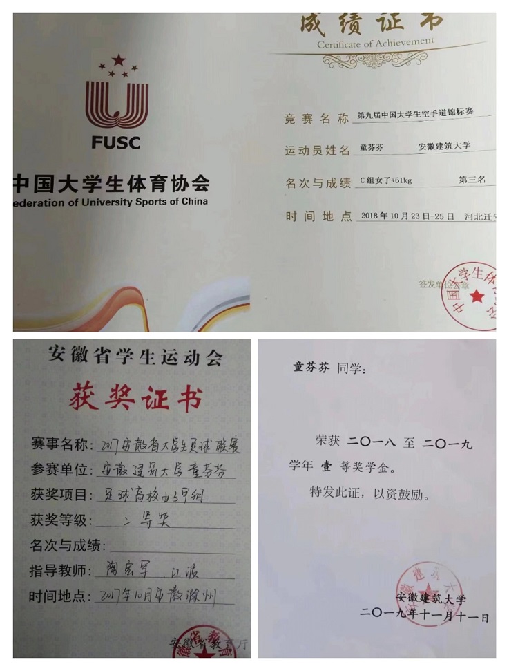 2017年入学后,童芬芬就在学校里获得了一等奖学金、高校部足球比赛二等奖、中国大学生空手道锦标赛第三名等多项荣誉。而两年的军旅生涯,使童芬芬得到了快速的成长,也感受到了自身的不足。