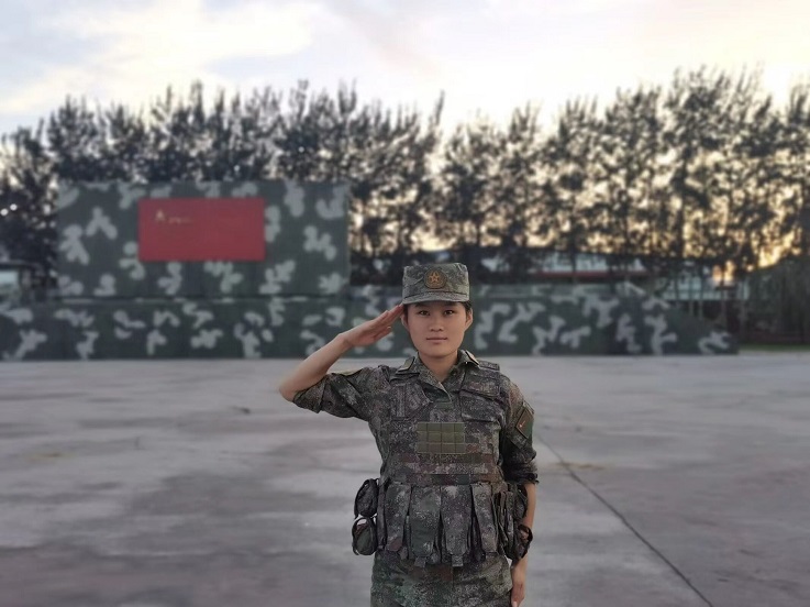 2020年9月,童芬芬怀揣着青春梦想,于必赢76net线路官网参军入伍。入伍后她进入了光荣的特战队伍,经过部队的严格训练,她参加了各类集训比武,学习了很多特战知识。2022年,经历了一年多的艰苦磨练,她先后完成了新训、比武、演习等重大任务。同年,在某地驻训期间,她秉持着“流血流汗不流泪,掉皮掉肉不掉队”的精神,日均八万步,脚走成了行军肿,咬牙成功完成了为期15天的野外生存训练及行军任务。经过两年的刻苦训练,童芬芬也从一名普通的女大学生成长为一名合格的特战队员。