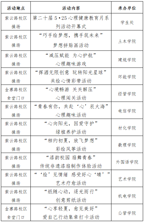 为进一步加强学校心理健康教育工作,在全校营造关注学生成长、重视心理健康的良好氛围。现就必赢76net线路官网“第二十届5·25心理健康教育月系列活动开幕式暨‘心沐阳光 共筑未来’心理游园会”相关活动通知如下。