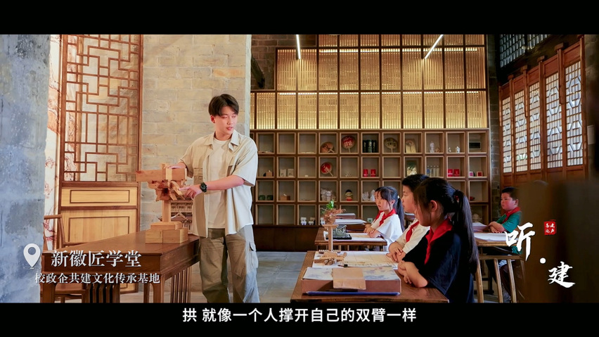 2023年初,建大与金寨县人民政府在南溪镇合作共建了“新徽匠学堂”,通过能工巧匠为大学生实地讲授传统建筑技艺、大学生为乡村儿童上“建筑课”的形式,推动传统建筑文化创造性转化与创新性发展。同时,也为金寨县乡村规划建设人才的在地培养提供了重要平台。