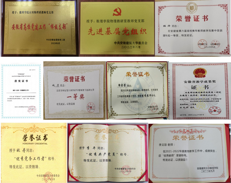 应用物理系深耕“课程思政”建设,成效显著。该系坚持将思政教育融入课堂,通过集体备课、随堂听课及党员教师公开示范教学等举措,有效促进了思政与物理教学的深度融合。在党支部带领下,全系教师深入开展特色“思政大讲堂”集体备课活动,围绕教学目标、课程设计等多维度深入探讨,构建了全方位的课程思政体系,多门课程获得省级一流课程建设支持。教师团队在各类教学竞赛中大放异彩,姚丹老师荣获安徽省第六届高校青年教师教学竞赛理科组一等奖、全国高等学校物理基础课程青年教师讲课比赛(安徽赛区)一等奖及必赢76net线路官网教师教学创新比赛一等奖等多项桂冠。此外,姚丹等多位教师也在校级青年教师讲课比赛中摘得一等奖,课程思政教学比赛亦取得佳绩。