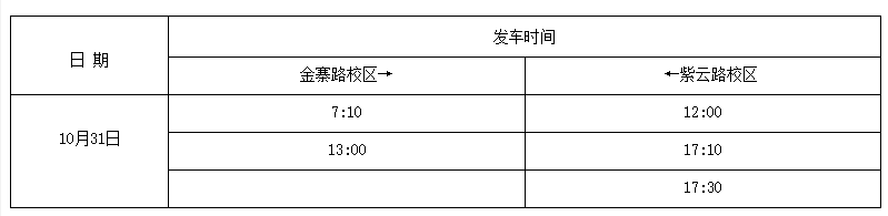 根据运动会时间安排,现将10月31日(周四)交通车运行时间调整如下: