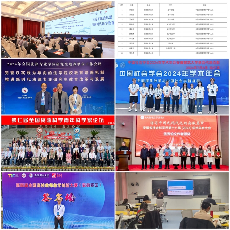教书育人,因材施教。2024年,学院获批法律硕士学位点,新增研究生导师24人,获安徽省研究生质量工程项目8项;学院教师获省教创赛一等奖1项、二等奖2项和三等奖1项,校青教赛一等奖1项、二等奖1项,包揽文科组前两名;学院3门课程推荐出省申报国家一流课程;成功举办中国社会学会2024年学术年会分论坛、安徽省首届法学院院长论坛和首届(2024)公共管理研究生论坛;人力资源管理国家一流专业建设、法学省一流专业建设不断推进,城市管理、劳动与社会保障专业获批省级专业提升项目,专业发展更加均衡。