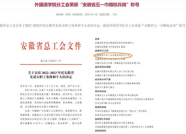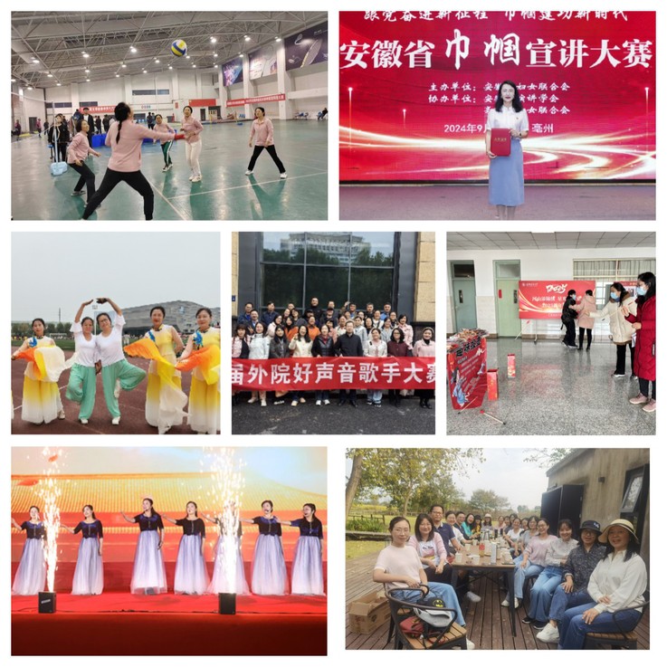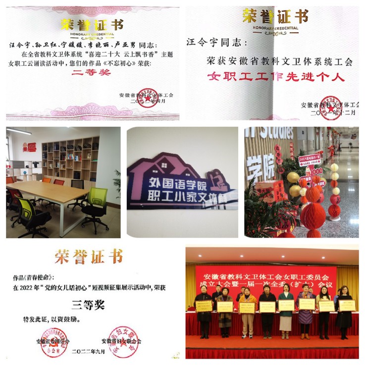 作为全校女性教职工比例最高的基层工会组织,外国语学院分工会现有会员66人,其中女教工达50人,占比76%,形成了一支以女性为主体的教学科研中坚力量。学院退休教师林莉兰是学校唯一一位安徽省三八红旗手荣誉获得者。现任分工会主席被评为2021年安徽省教科文卫体工会女工工作先进个人,获得2024年安徽省巾帼宣讲大赛三等奖。学院分工会被评为2022年学校工会工作先进集体、2023年学校模范职工小家、2023年省教科文卫体工会阳光家园心灵驿站、2023年度安徽省五一巾帼标兵岗。学院女职工们既是传道授业的杏坛园丁,又是家庭社会的多重角色承担者,在自己的岗位上绽放着独特的光芒。
