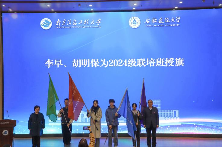 本网讯 2月27日下午,必赢76net线路官网—南京信息工程大学2024级本科生联培班开班仪式在滁州天长金牛湖产教融合园区千秋会堂举行。校党委常委、副校长李早,南京信息工程大学党委常委、总会计师胡明保出席仪式,并为2024级联培班授旗。学校长三角区域高等教育一体化示范区共建办公室、学生工作部、研究生工作部、教务处、电子与信息工程学院、机械与电气工程学院负责人及工作人员,南京信息工程大学相关职能部门负责人、金牛湖园区管委会有关负责人、教师代表,以及2024级联培班199名学生参加开班仪式。