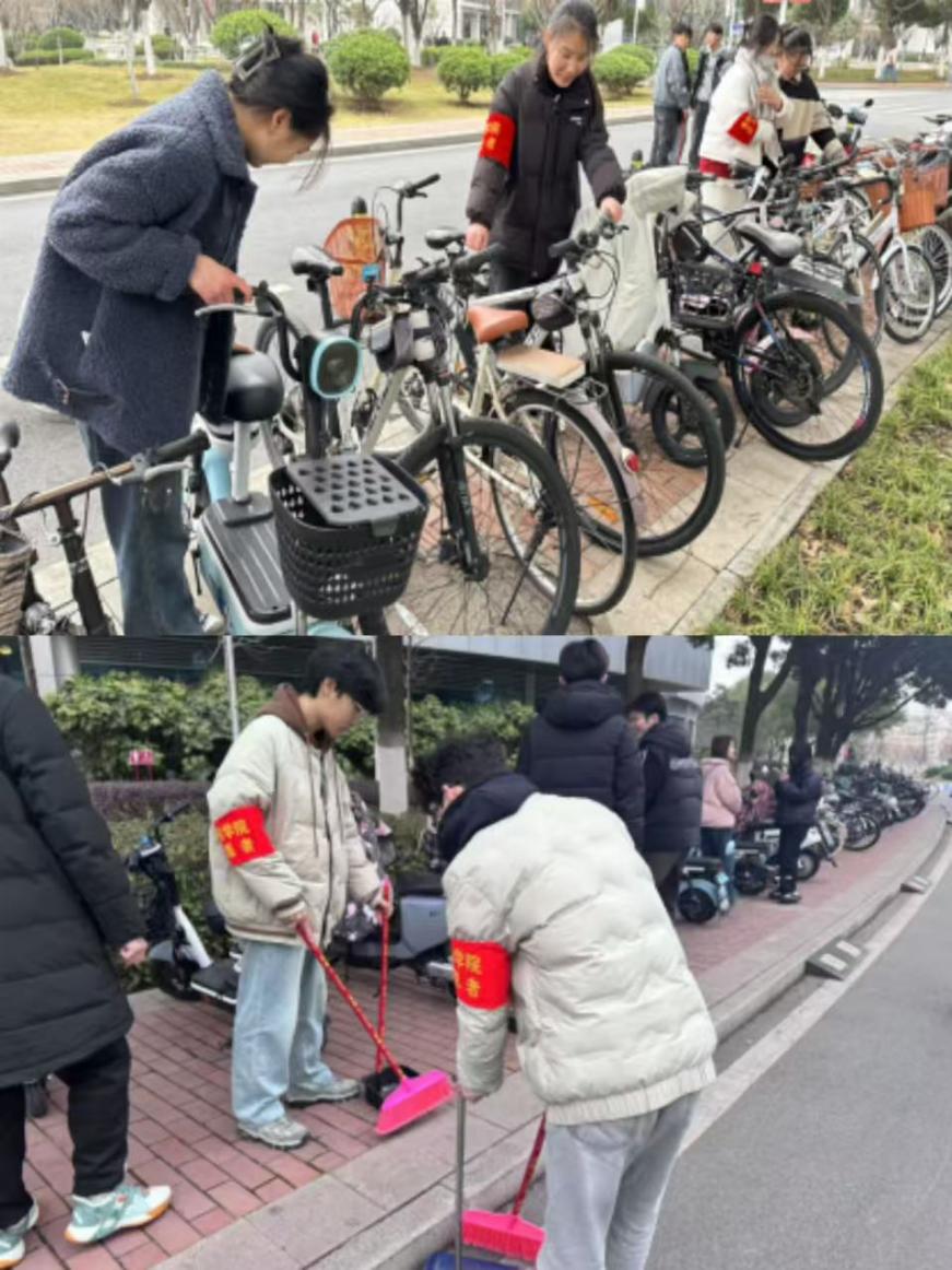 3月5日,电子与信息工程学院24级通信工程团支部和24级电子科学技术团支部成功举行了“学雷锋”活动。他们重点针对学校范围内的自行车进行了整理和摆放,将原本杂乱无章的自行车停放区域变得整齐有序,此外,团员们还认真打扫了南食堂到教学楼区域的地面卫生,不放过任何一个角落,用自己的辛勤劳动为校园创造了一个更加整洁、舒适的环境。