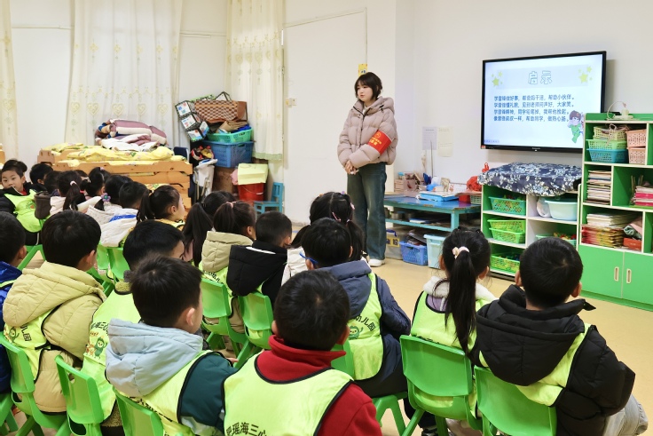 经济与管理学院"菁琯"青年志愿者服务队15名队员走进合肥瑶海三心幼儿园,通过"故事讲述+仪式教育+劳动实践"三位一体模式,为30余名学龄前儿童带来沉浸式雷锋精神教育体验,通过雷锋故事课堂与劳动实践相结合的形式,让幼儿园小朋友在“听、看、做”的立体体验中感悟雷锋精神。