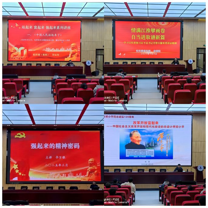 党委组织部(党校)、宣传部、统战部、纪委办、马克思主义学院负责人分别以《中国人民站起来》、《改革开放富起来》《民族复兴强起来》《学习贯彻习近平总书记考察安徽重要讲话精神》《中国共产党纪律处分条例解读》为题,为党员发展对象作了辅导报告;数理学院、公共管理学院党委负责人等分别以《深入学习贯彻党的二十届三中全会精神》《党的宗旨和党的作风》《中国共产党党员的条件、义务和权利》为党员发展对象作了辅导报告。培训期间,视频学习了浙江大学本科生院院长、人工智能研究所所长吴飞所作的《DeePsSeek:回望AI三大主义与加强通识教育》;参训学员围绕“青年知识分子的理想追求和使命担当”主题认真开展了分组研讨。