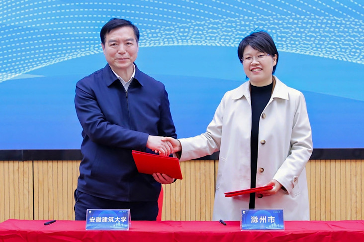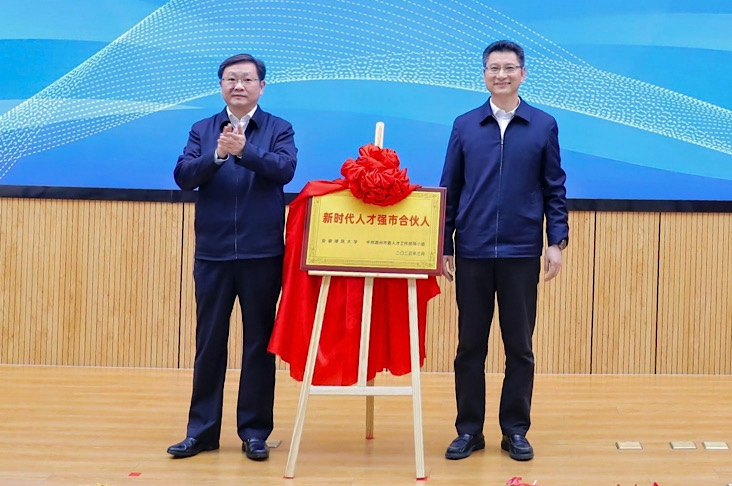 在推介活动现场,单培与黄显怀签署校地合作协议,吴劲、马文革共同为滁州市“新时代人才强市合伙人”揭牌。