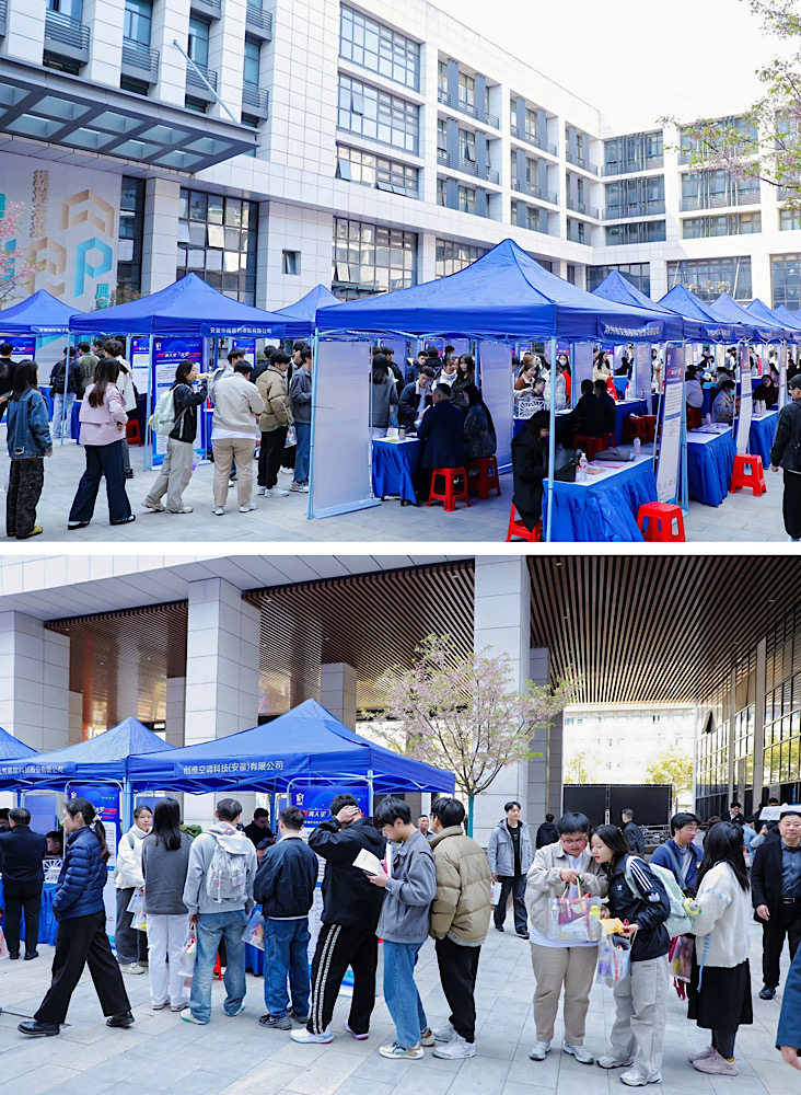 会后,市校领导深入校园招聘活动现场进行巡查指导,与招聘企业、求职学生亲切交流,了解招聘进展与学生就业意向,助力毕业生高质量充分就业。此次招聘活动共有114家在滁企业参加,提供岗位1059个,涵盖了建筑、环保、机械等多个领域,为学校毕业生提供丰富的就业选择。活动现场气氛热烈,众多毕业生与企业招聘人员进行了深入交流,投递简历,积极寻求就业机会。