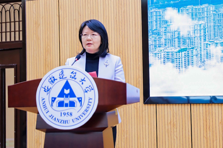周文芳作滁州人才发展环境推介。她详细介绍滁州市的经济社会发展情况、产业布局以及人才引进政策,诚邀建大学子毕业后到滁州就业创业,为滁州的发展贡献力量。