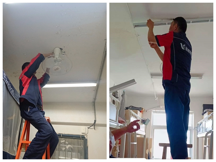 学生宿舍出现设备故障,有时候是没有时间和规律可循的,对于黄师傅来说,24小时在线是常态。每年的毕业季和迎新季,是维修师傅们最忙碌的时候。高温之下,黄师傅常常带着工具包跑前跑后、汗如雨下,维修内容涉及寝室灯、风扇、床铺、桌椅等等......去年6月到9月,黄师傅处理了1000余件学生报修问题。
