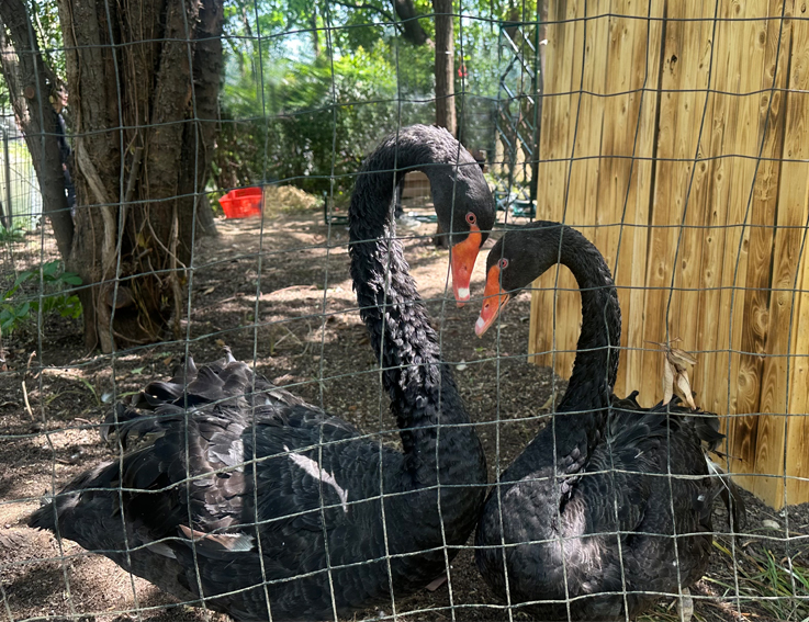 考虑到黑天鹅对栖息环境较为敏感,学校精心筹备,积极赴合工大对接有关事宜,了解饲养细节。在岛上搭建了安全舒适的栖息场所,完善了防护设施,做好水质监测,实时关注健康状况,让黑天鹅在“新家”中幸福生活,繁衍生息。