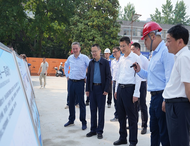 在施工现场,调研组重点查看了“分改排疏”系统、新建分流排水通道、箱涵排水系统改造施工情况,听取了关于施工安排、力量配置、建设难度、目前施工进度等情况汇报。