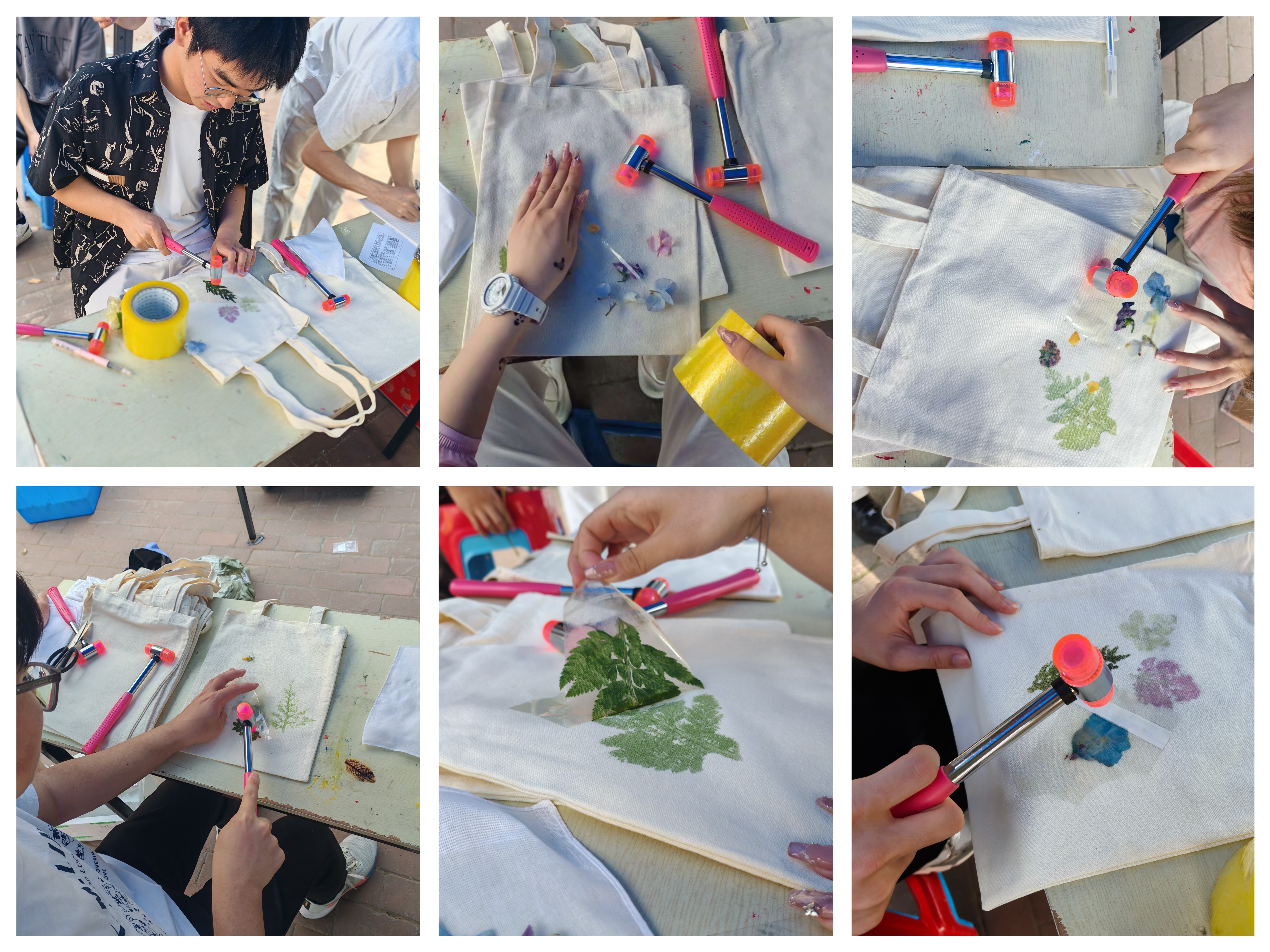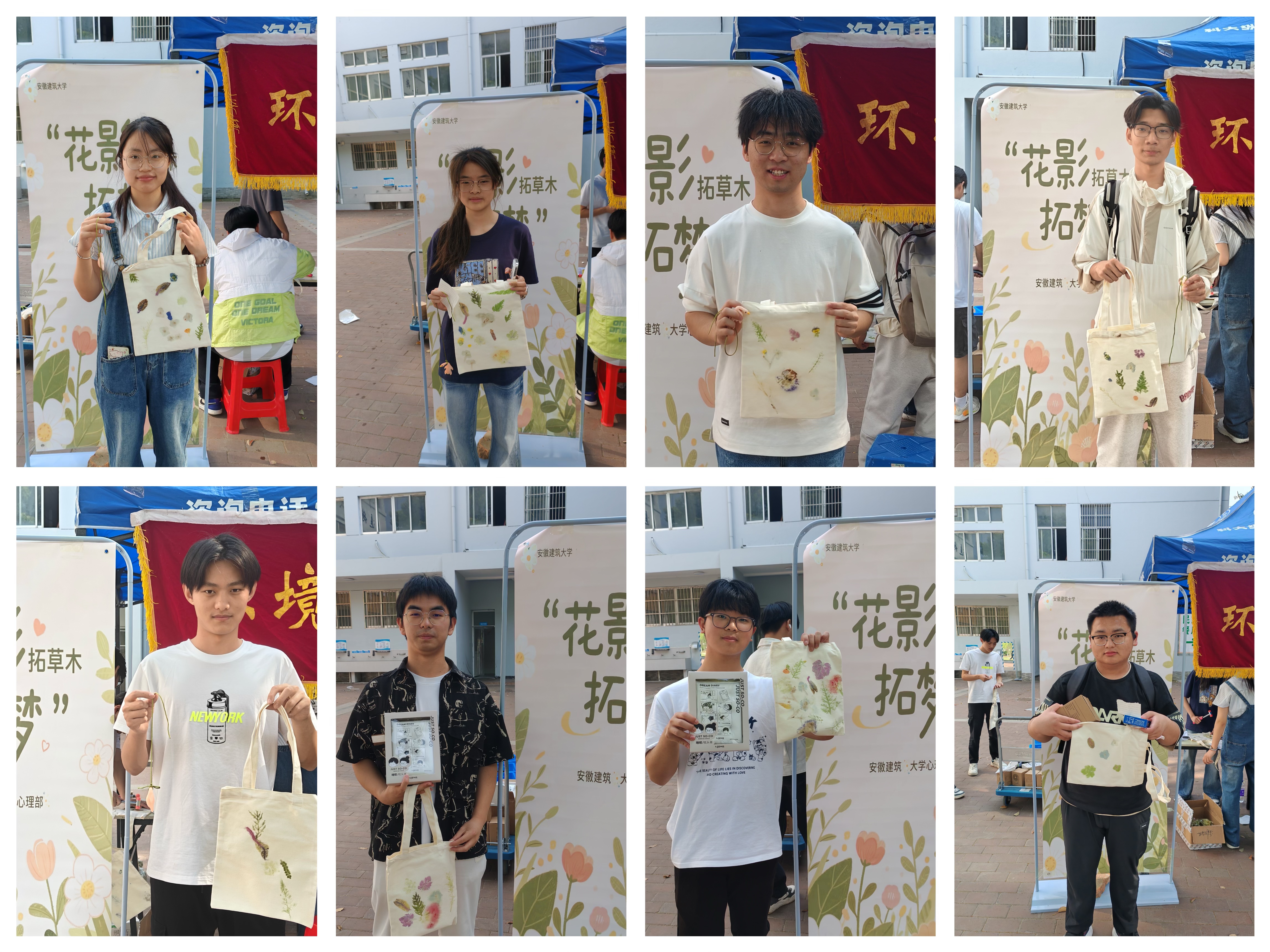 为提升学生心理健康水平,培育其创新精神与劳动技能,4月20日,环能学院心理部在北食堂门口举办“叶脉与心迹:疗愈的拓印之旅”活动,让参与者体验了一段充盈着创意与心灵滋养的曼妙时光。活动现场,丰富多样的植物材料和一应俱全的拓染工具整齐摆放,营造出了浓郁而热烈的创作氛围,在心理部工作人员的指导下,同学们发挥自己的创意和想象力,挑选心仪的植物,他们紧握着锤子,小心翼翼地在帆布包上敲打植物,赋予每一片花瓣和叶片新的生命。随着作品的逐渐成形,同学们的脸上开始洋溢着兴奋与自豪的笑容。他们纷纷将手中的作品高高举起,留影纪念,记录下这份由自己亲手创造的美好瞬间。