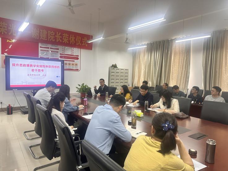 本网讯 为贯彻落实习近平总书记关于学校思政课建设的重要指示精神,进一步提升思政课教师的教学能力与专业素养,马克思主义学院开展“思政课教学质量年”系列活动。近日,全国高校青年教师教学竞赛思政组一等奖获得者、南京师范大学马克思主义学院王磊教授应邀来校,作“提升思政课教学实效性和获得感的若干思考”主题报告。本次活动由学院副院长(主持工作)马晓艳主持,马克思主义学院全体教师参加。