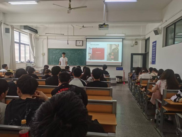 举办“退伍学长现身说‘兵’”主题分享会,特邀退役复学学生现场宣讲。曾服役于武警总队的2023级学生李普煜,以视频、照片还原军营训练、日常生活等真实场景,坦言“军旅生涯锤炼了我的意志,更让我读懂‘家国’二字的分量”。现场互动环节,同学们围绕体能训练、征兵体检等踊跃提问,宣讲人逐一解答,接地气的讲述赢得阵阵掌声。