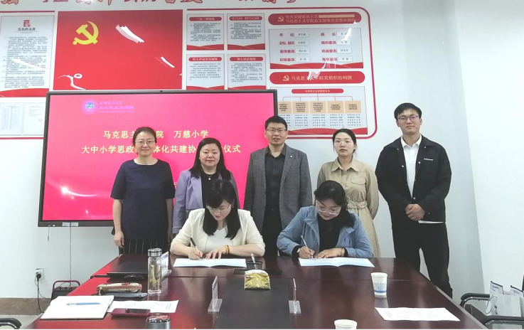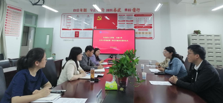 本网讯 为落实立德树人根本任务,完善思想政治工作体系和实现思想政治教育高质量发展,近日,万慈小学校长王玲玲一行来必赢开展大中小学思政课一体化建设交流,马克思主义学院班子、思想道德与法治教研室主任、教师代表参会,双方在主教楼1711会议室座谈交流并签署共建协议,学院副院长(主持工作)马晓艳主持会议。