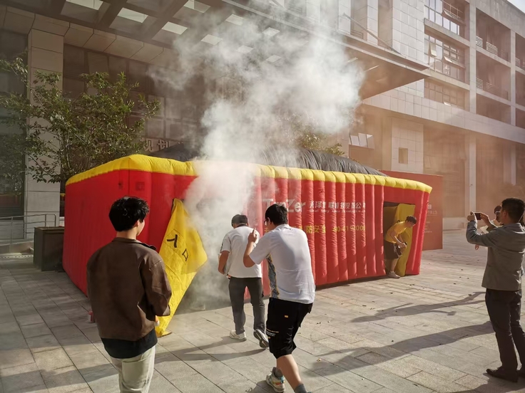 最受关注的现场逃生演练在模拟场地内展开,参演师生弯腰低姿,按照预定疏散路线有序撤离“灾害现场”,引导员分工明确、各司其职,确保演练安全有序,全体人员顺利疏散至安全区域。此次活动将理论知识与实践操作有机结合,有效增强了师生防灾减灾意识与应急处置能力。(作者:刘培;一审:丁辉;二审:王凯;三审:汪翼湧)