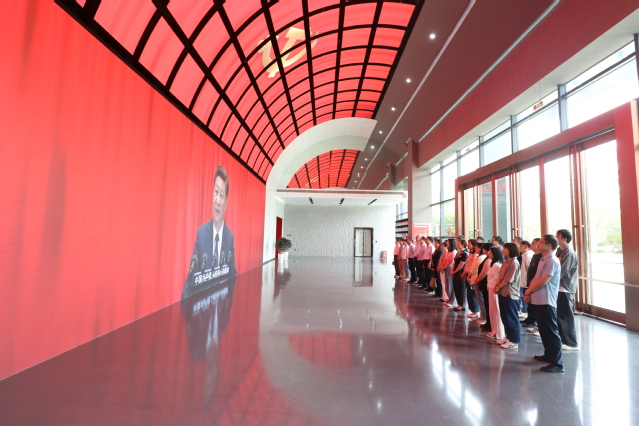 专题研讨班第四、五组学员深入安徽省党风廉政教育馆开展“沉浸式”学习教育,依次参观了“纪律立党 从严治党”“廉润江淮 清风扬帆”“以案为鉴 警钟长鸣”“不忘初心 永葆清廉”等四个展厅,通过观看图文展示、警示教育、场景还原等,深入学习了中国共产党在党风廉政建设方面的光辉历程、关于党的纪律建设重大决策部署和取得的显著成效以及安徽省党风廉政建设和反腐败斗争取得的成果。一件件鲜活的警示案例和一份份令人唏嘘的忏悔书给年轻干部们带来了强烈的视觉冲击和心灵震撼,让年轻干部直观感受到“贪廉一念间,荣辱两重天”的深刻警示。年轻干部面向鲜红党旗,重温入党誓词,彰显着党员干部坚守初心使命、永葆政治本色的坚定决心。