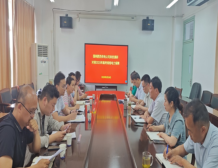 本网讯 5月28日,国网肥西供电公司总经理沈攀应邀率队来校调研学校高考阅卷电力保障工作,后勤管理处处长唐黎主持会议,后勤管理处班子及相关科室成员参加座谈。