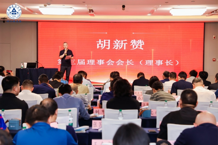 新当选会长、俄罗斯自然科学院外籍院士、浙江江南工程管理股份有限公司董事、常务副总裁、研究院院长胡新赞发言,他代表新当选的理事会成员,向参加大会的校友会代表和嘉宾表示欢迎和感谢,作为新一届会长,将秉承“徽筑浙里·三届同心,匠心致远启新程”会议主题,继续发扬进德弘毅、博学善建的校训精神,致力于搭建母校与浙江校友之间的桥梁,促进校友之间的交流与合作,推动浙江校友会的繁荣发展。一是加强组织建设,完善各分会的组织结构,吸纳更多校友参加浙江校友会。二是加强校友联络,定期举办学术交流、职业发展讲座、校友友谊比赛、体育赛事等活动,加强校友间友谊和信任。三是促进资源共享,发挥校友会平台作用,整合校友资源,为学校和校友事业发展提供有力支持。