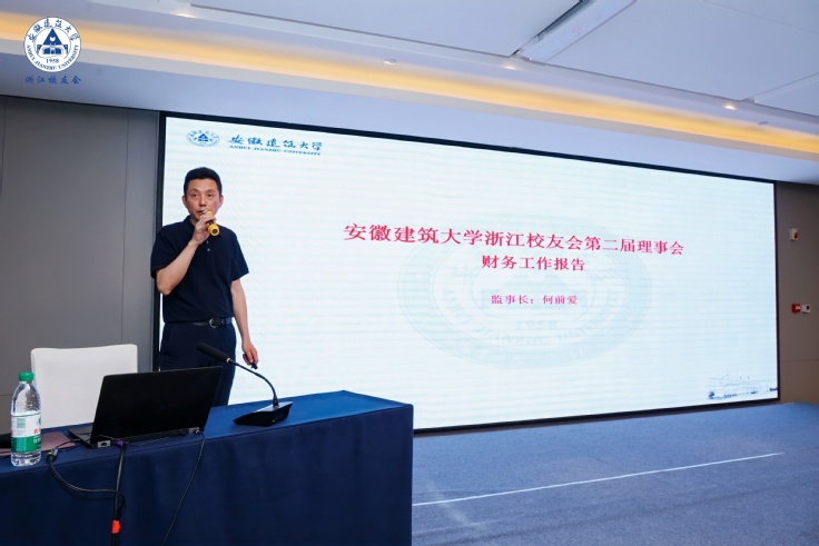 浙江华坤建筑设计院副院长、浙江校友会第二届监事长何前爱向大会作财务工作报告。