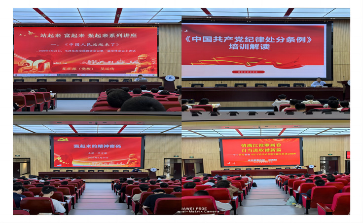 组织部(党校)、宣传部、教师工作部、纪委办、数理学院、马克思主义学院负责人等分别以《中国人民站起来》《改革开放富起来》、《民族复兴强起来》《学习贯彻习近平总书记考察安徽重要讲话精神》《中国共产党纪律处分条例解读》《深入学习贯彻二十届三中全会精神》《党的宗旨和党的作风》《中国共产党党员的条件、义务和权利;党徽党旗、党员徽章规范管理使用》为主题,为党员发展对象作了党课报告。为扎实开展深入贯彻中央八项规定精神学习教育,培训班组织参训学员观看了反腐电视专题片《反腐为了人民》,参训学员围绕“青年知识分子的理想追求和使命担当”主题认真开展分组研讨。通过专题培训,参训学员进一步端正入党动机,坚定理想信念,提高党性修养,受到一次深刻的政治洗礼和思想淬炼,切实增强了坚定不移听党话、跟党走、感党恩的政治自觉、思想自觉和行动自觉。