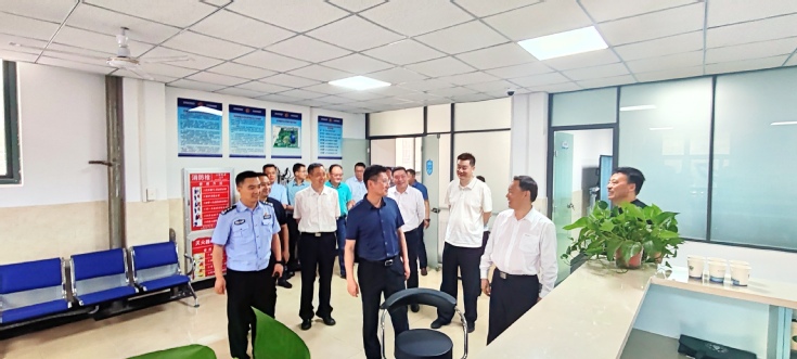 本网讯 6月4日,合肥市公安局党委副书记、常务副局长陈发利率队莅临必赢76net线路官网开展校园安全督导调研工作,合肥市公安局国保支队支队长马文全、经开公安分局局长李韬、政委马克群、副局长吕晓燕、锦绣派出所所长方伟陪同调研。校党委书记马文革主持座谈会,校办公室、学生处、保卫处负责人参加会议。