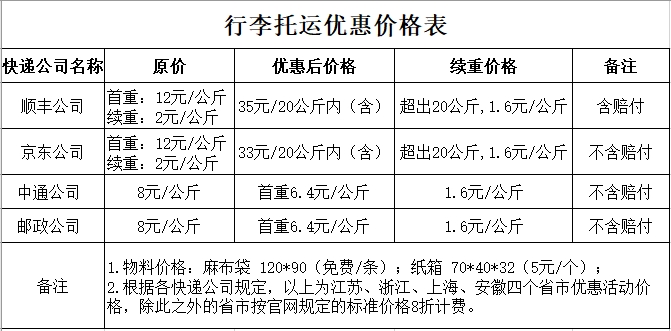 备注:办理行李托运期间,两个校区所有快递驿站和托运点集中办理快递托运均可享受毕业季行李托运价格优惠活动。