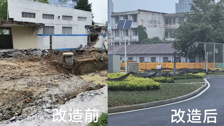 理顺管线,消除安全隐患。在工程建设过程中,对校区地下水、电、气等错综复杂的管网设施进行了详细摸排与梳理,成功定位多处供水管道渗漏漏点,顺利完成5处高压电缆、15处低压电缆、4处燃气管道、7处供水管道的迁改工作,有效消除了地下管网存在的安全隐患,为校区基础设施的稳定运行奠定了基础。