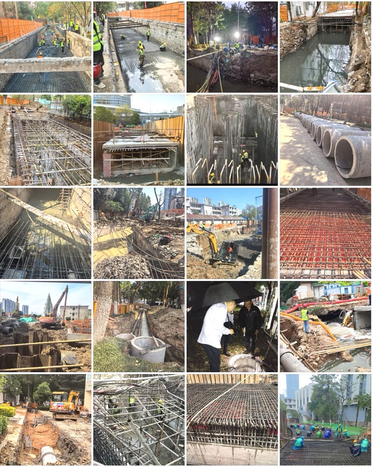 学校党委始终将解决内涝问题作为工作重点。在工程开工前,校党委书记马文革多次针对施工方案的修订提出建设性指导意见,并多次深入施工一线现场检查指导工作。他要求相关部门全力配合施工,对施工过程中的重点难点节点进行详细研判,细化施工计划,倒排工期进度,在加快工程推进速度的同时,做到安全文明施工,维护良好的校园秩序。