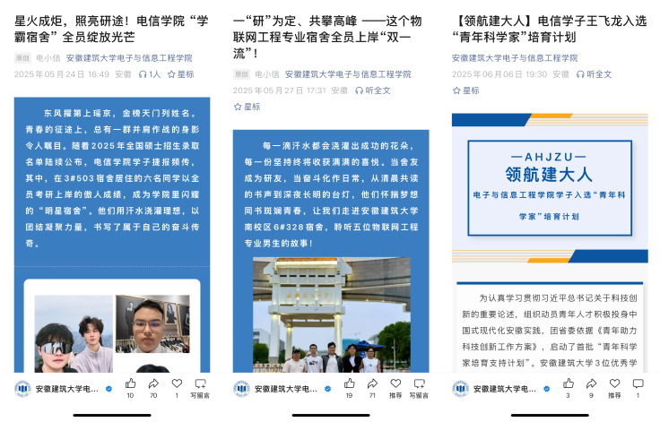 以主题班会为载体,构建“学院统筹、班级实施、学生参与”三级实践体系。辅导员召开学风建设主题班会,系统解读学业预警机制、综测加分细则等核心制度;邀请优秀学生分享成长经验,激发学生内在学习动力;围绕“考研升学规划”“专业学习痛点破解”“职业发展路径探索”等学生关切话题,针对高年级学生开设“考研经验交流会”,邀请“准”研究生分享院校选择策略、备考安排,加强低年级学生与学业导师的沟通,组织学生参加简历大赛等;此外,学院加强榜样引领,“电小信” 微信公众号定期推送优秀学生事迹专题报道,形成“线上+线下”协同发力的学风营造格局。