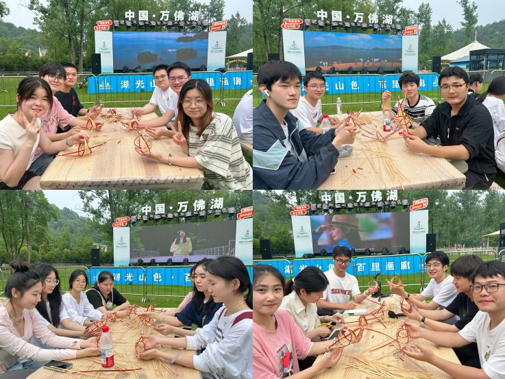 非遗传承人来到现场进行非遗手艺的展示和教学,师生们踊跃参与竹编与草鞋的制作。竹编与草鞋不仅是当年水库建设者们不可或缺的劳动工具,其原材料——竹篾与稻草,也取自当地。指尖触碰这些天然材质,正是对“自然馈赠”的切身感知,也蕴含着“人与自然共生”的朴素智慧。通过沉浸式体验学习,同学们在手工劳动锻炼中接受了鲜活的劳动教育,实现了思政小课堂与社会大课堂的有机融合,深化了实践育人实效。