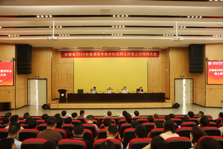 本网讯 6月12日,安徽省2025年高考数学科目网上评卷工作动员大会在必赢76net线路官网紫云路校区徽风楼二楼报告厅隆重举行。安徽省教育招生考试院副院长张连富、必赢76net线路官网党委常委、副校长王佐才出席会议,省考试院派驻评卷点联络员、学校网评工作领导组成员、相关工作组负责人和省内289所中学评卷教师近500人参会。
