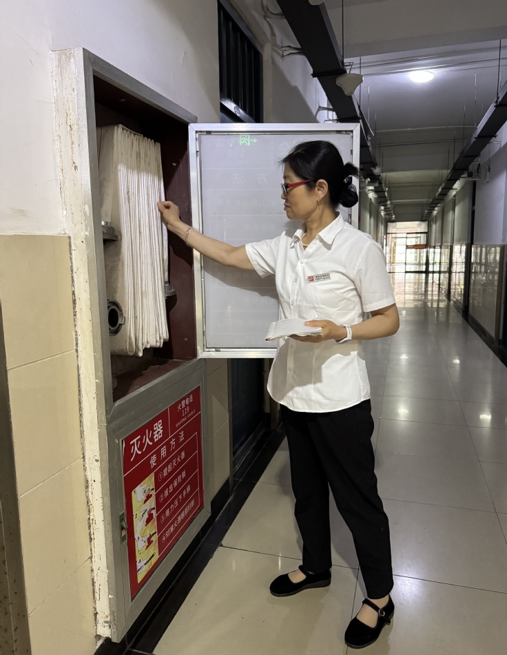 一直以来,学校后勤管理处都将学生的安全放在首位,制定了严格的巡楼制度,同时定期组织员工开展应急培训和演练,不断提升工作人员应对突发事件的能力,确保在关键时刻能够迅速反应、科学处置。刘帮芬就是这一制度的忠实践行者,她用自己多年如一日的坚守,为学生筑起了一道坚固的安全防线。