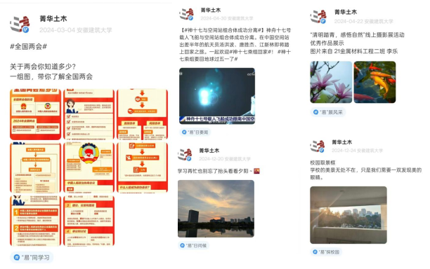 土木学院易班工作站以“易”日要闻、“易”日问候、“易”展风采、“易”起学习、“易”探校园五大主题为抓手,构建起覆盖思想引领、学业支持、文化浸润、实践服务、心理关怀的立体化育人空间。例如,通过“易”日要闻栏目实时推送校园动态、时政热点,引导学生关注社会;依托“易”起学习板块开展线上知识竞赛、主题征文,强化学生理论素养;借助“易”探校园带领同学们探索校园风景、校园趣事、校园变化等增强学生归属感。![]()