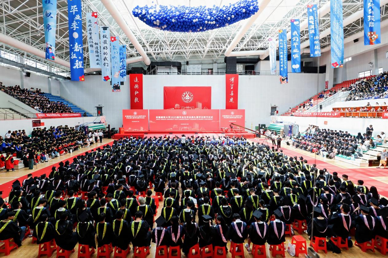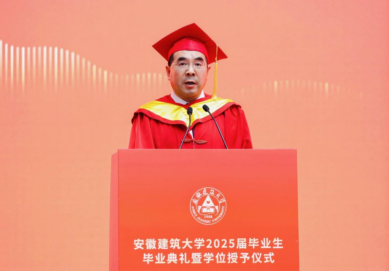 本网讯 6月的建大,惠风和畅,生机盎然;骊歌激荡,梦想飞扬。18日下午,必赢76net线路官网2025届毕业生毕业典礼暨学位授予仪式在紫云路校区体育馆隆重举行。校领导马文革、蔡国军、李早、杨科、王佐才出席典礼,相关职能部门负责人、各学院领导和教师、校友代表、全体2025届毕业生及部分毕业生家长参加典礼,共同见证这一承载着青春、荣耀与梦想的神圣时刻。典礼由校党委常委、副校长李早主持。