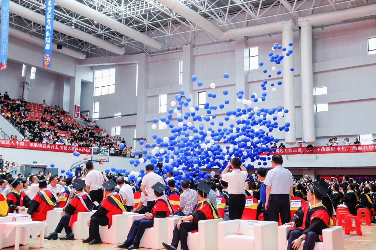 在全场师生热切的期盼中,校党委副书记、校长蔡国军发表了热情洋溢的致辞。他代表学校向全体毕业生致以最诚挚的祝贺,并深情寄语大家,要牢记母校嘱托,心怀“国之大者”,勇担时代使命,争做破浪前行的领航者、敢为人先的开拓者和温暖世界的守护者,在未来的道路上绽放青春光彩!校长的讲话激荡人心,话音落下,绚烂的彩色气球雨从天而降,祝福与希望在此刻一同放飞。