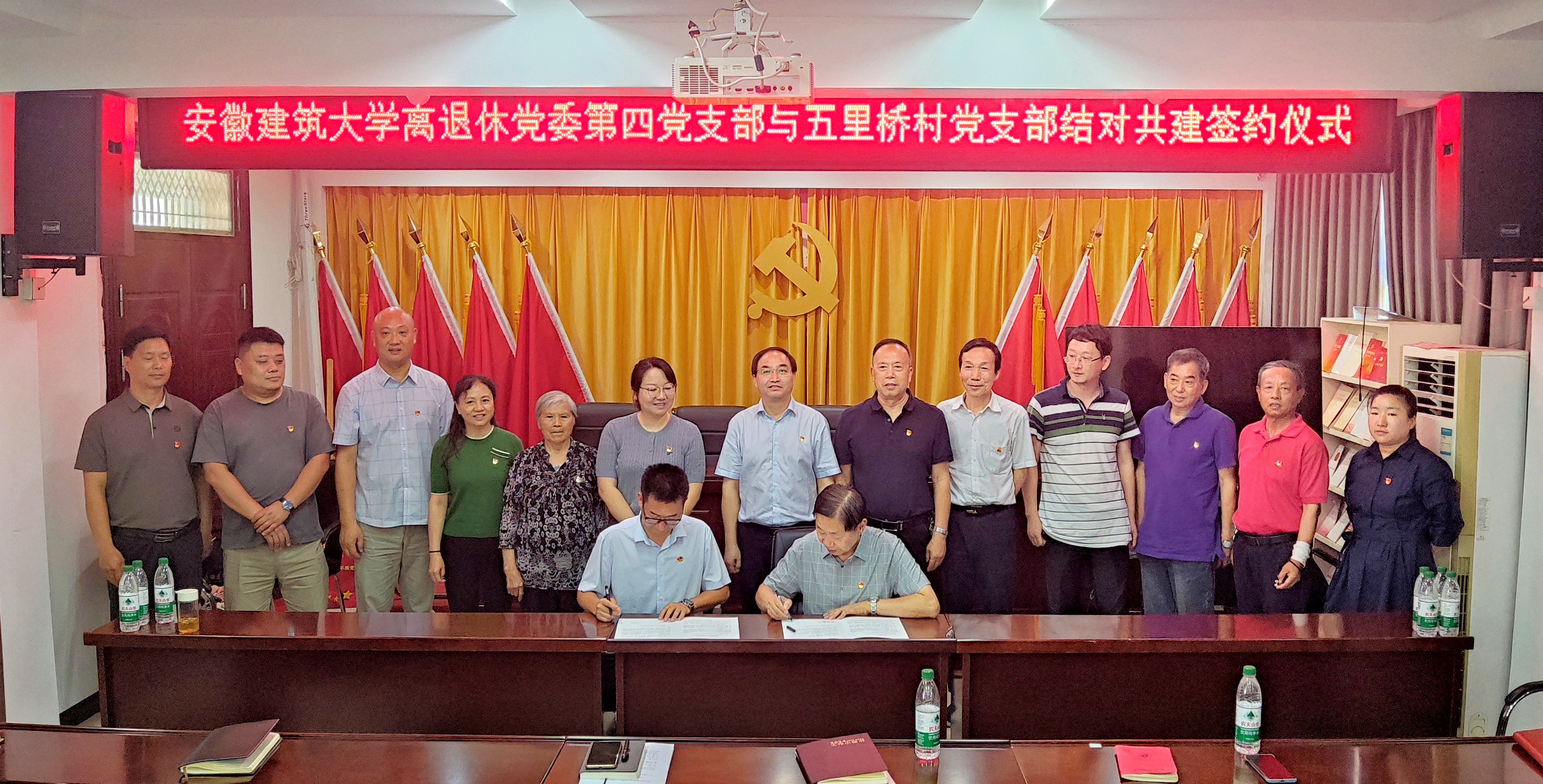 本网讯 为进一步深入学习贯彻习近平总书记关于“三农”工作重要论述,创新党建活动形式,提高党建工作实效。6月17日,离退休第四党支部赴舒城县千人桥镇五里桥村开展党建学习交流活动,并与五里桥村党支部举行“结对共建”签约仪式,探索以组织共建助力乡村振兴的新路径。离退休党委书记汪涛、离退休第四党支部书记董如何、千人桥镇党委副书记李瑞帆、五里桥村党支部书记方根生及双方党员代表参加活动。签约仪式由必赢驻村党支部第一书记金鑫主持。
