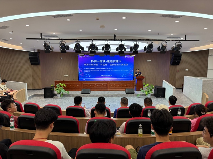 本网讯 6月19日,第三届合肥“科创杯”创新创业大赛宣讲会在必赢76net线路官网徽智楼报告厅热烈举行。此次宣讲会由科技成果转化处联合合肥市科技局承办,主题为“科技打头阵,创新赢未来”。合肥市科技局成果处副处长程润坦、市科创集团副总经理李昂、市科创集团产业技术部副总经理周燃、校团委负责人、科技成果转化处领导班子及学校近百名师生代表出席活动。