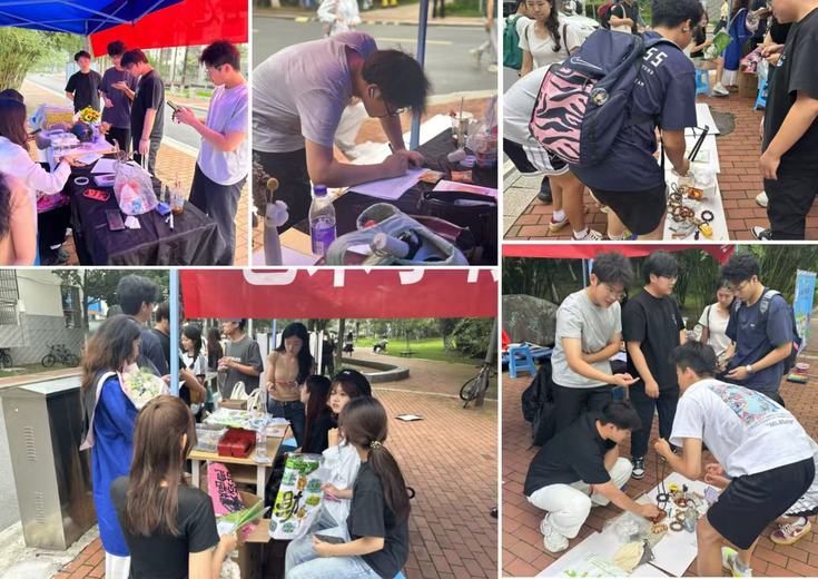 “时光杂货铺”活动现场气氛热烈。毕业生们踊跃设摊,展示、售卖、交换满载大学记忆的二手书籍、特色纪念品与精巧的自制工艺品。线上交易平台也同步高效运转,为大件物品流转提供便利。活动不仅有效促进了资源的循环利用与共享,更以物品的流转为纽带,无声地传递着同学间的深厚情谊,让惜别之情在实用与环保的实践中自然流淌。